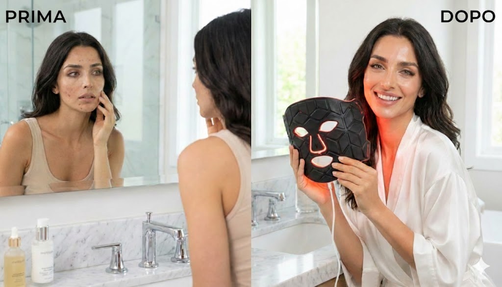 La maschera a luci LED per il viso aiuta a migliorare l’aspetto della pelle, favorendo benessere e luminosità giorno dopo giorno.